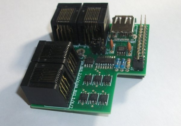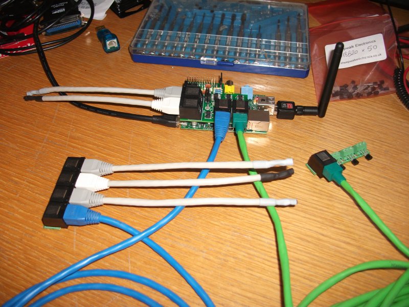 (click on any photo to see a larger version) The photos above show an RPI3v1 This is a temporary page to give a quick guide on the RPI3. It will be replaced by better documentation shortly. Please click here for an image of an RPI3 and two RPI3a modules. It shows an RPI3 on a Raspberry Pi and also both versions of the RPI3a connected to it with the green and blue cables. The sensors shown are simply SWE0 sensors with very short cables used for testing. It is very important if you have an RPI3 with the RTC option that you do not connect the RPI3 to your Raspbery Pi without inserting a battery in the holder on the underside. Doing so could potentially damage the RTC IC on your RPI3. You will need a 3V CR1632 button cell. Due to postage restrictions we are not able to supply a battery so you will have to source your own. The battery is to be inserted with the positive side upwards allowing you to read the writing on the top of the battery. If you have an early Pi and an RPI3 with the RTC option then the battery holder on the RPI3 and the P2 header on your Pi will clash. If you want it to work you'll have to remove/bend/alter the header. On the later Pis this header has nothing soldered into it so there is no issue. If you have the non-RTC RPI3 then there is also no issue as the battery holder is not present. If you have a later Pi then the supplied nylon screw assembly can be used to secure the RPI3 to your Pi. It should be assembled with one of the thin washers each side of each PCB (the Pi and the RPI3) with the large spacer in the middle of the whole lot, so from bottom to top the order goes screw, washer, Pi, washer, spacer, washer, RPI3, washer, nut. Do not overtighen this or you will either snap the screw, damage your Pi, or both. The software setup for the 1-Wire part of the RPI3 is essentially the same as for the RPI2 but you will see 8 1-Wire busses instead of 1, numbered bus.0 up to bus.7. See the RPI2 page for more details of this. To configure the RTC part this post on the Raspbery Pi forum seems to cover most of what you need to do, but the line starting "echo pcf8563" should have the "pcf8563" replaced by "ds1307". The USB socket on the RPI3 is a power input socket and is not normally needed, the RPI3 will get its 5V supply from the Raspberry Pi. If you will be using power hungry 1-Wire devices and wish to provide your RPI3 with its own power supply then remove jumper J3 (to disconnect the RPI3s 5V line from the 5V line on your Raspberry Pi) and connect a regulated 5V supply to the USB socket on the RPI3. The RJ45 sockets along the left side of the PCB (above the power connector and SD card) have one bus on each (busses 0 and 1) and are wired to the same standard as the RPI2 and all our other modules to allow easy connection via Cat5 cable. Four pins are connected, pins 1 and 2 (GND and +5V), and pins 4 and 5 (1-Wire Data and Ground). The RJ45 sockets along the bottom of the PCB (above the HDMI socket) have three busses on each (busses 2,3,4 and 5,6,7) and are wired as follows. Pins 1 and 2 are GND and +5V. Pins 4 and 5 are data and ground for the first 1-Wire bus (the blue cable pair on normal Cat5). Pins 6 and 3 are data and ground for the second 1-Wire bus (the green cable pair on normal Cat5). Pins 8 and 7 are data and ground for the third 1-Wire bus (the brown cable pair on normal Cat5). The easiest (well cheapest at least) way to connect to these is cut one end off a length of Cat5 cable and use the blue, green and brown pairs as your three busses. Alternatively if you want to convert these sockets to normally wired RJ45 sockets or screw terminals then the RPI3a module is what you need. Simply connect the RPI3 to the first RJ45 on the RPI3a and you then get either three normally wired RJ45 sockets or three sets of 3 pin screw terminals. I hope that all makes sense. Questions are welcome via email or on Facebook. |