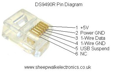 Cable Type: Whilst you can use just about any two core cable for small 1-Wire networks, it is usually better to use a twisted pair cable, the most commonly available being Cat5 Ethernet cable. Connectors: All of our modules (as well as many from other manufacturers) use RJ45 sockets wired to a standard layout that allows you to use cheap and readily available Cat5 Ethernet cables to join modules together to build your network. The exception to this is that the bus master modules we sell (the DS9097U and DS9490R) have RJ12 connectors and not RJ45. So the first cable on your network will need to have an RJ11 or RJ12 connector on it. The First Cable: You can often manage with an old modem or telephone cable if you have one lying around as the RJ45 sockets on the modules will take an RJ11 plug. If you want to do this you need to ensure that the pins are connected the right way round as many modem cables reverse the order of the cables from one end to the other. You need a cable with the middle two pins connected straight through to the same pins on the other cable. See this image for examples of cables that will and will not work. As you can hopefully see on the image the colours need to be in the same order on both ends of the cable. If you don't have a suitable cable, we sell ready made cables which you can find on the Cables and Connectors Page of our online store. Connector Pinouts: If you wish to make your own modules or cables here are the pinouts to help you: RJ45 connector on the modules RJ12 pinout on the DS9097U Host Adapter RJ12 pinout on the DS9490RU Host Adapter |