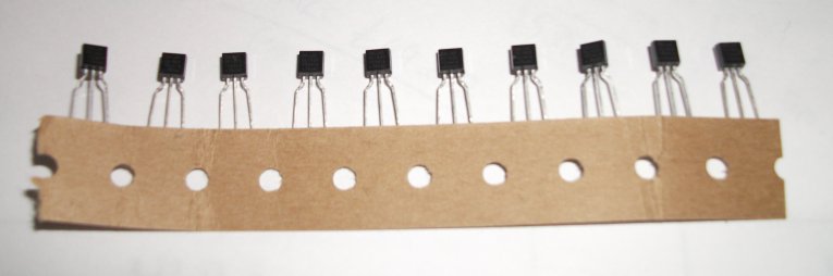 1-Wire temperature sensor. Click here to view the datasheet for this device. Please note as per the picture our current stock of these are on a tape strip with formed legs giving a 0.1" pin spacing.