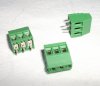 A single 3 pin 0.15" spacing PCB mount screw terminal block as used in the modules we make and sell.